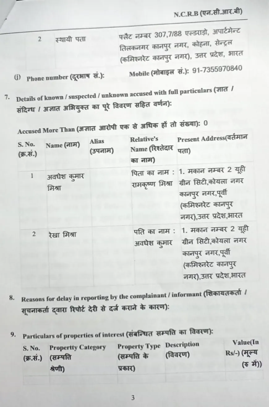 उप्र के फतेहपुर जनपद की बीजेपी की जिला उपाध्यक्ष रेखा मिश्रा और उनके पति अवधेश मिश्रा के खिलाफ 2.37 करोड़ रुपये की ठगी का मामला दर्ज किया गया है।