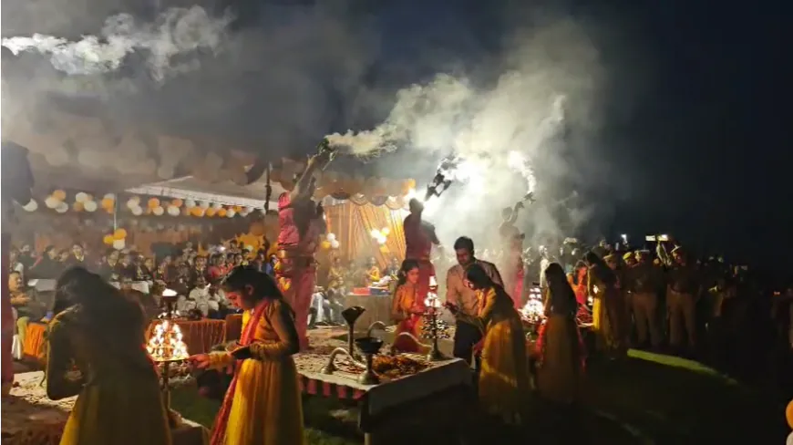 एटा के कालिंदी घाट पर वैदिक मंत्रोच्चार के बीच मां गंगा की भव्य आरती, भक्तिमय माहौल में उमड़ा जनसैलाब