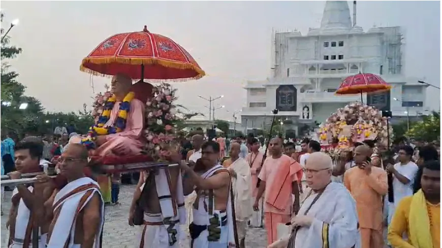स्वर्ण-प्रभा से आलोकित रथ पर विराजमान श्रीश्री राधा-वृन्दावन चंद्र के दर्शन पाकर भक्त भावविभोर हो उठे। शोभायात्रा प्रारंभ होने से पूर्व मंदिर परिसर को रंग-बिरंगे और सुगंधित पुष्पों से सजाया गया। भक्तों ने स्वयं रथ को विशेष पुष्पों से अलंकृत किया, जिससे सम्पूर्ण वातावरण में भक्ति, सौंदर्य और आनंद का संगम झलक उठा।