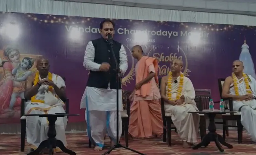वृन्दावन के चंद्रोदय मंदिर में त्रिदिवसीय कार्तिक उत्सव की शुरुआत श्रीश्री राधा-वृन्दावन चंद्र की भव्य शोभायात्रा से हुई। हजारों भक्तों ने संकीर्तन, दीपदान और पुष्पवृष्टि से उत्सव को भक्ति रस से भर दिया।