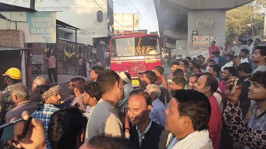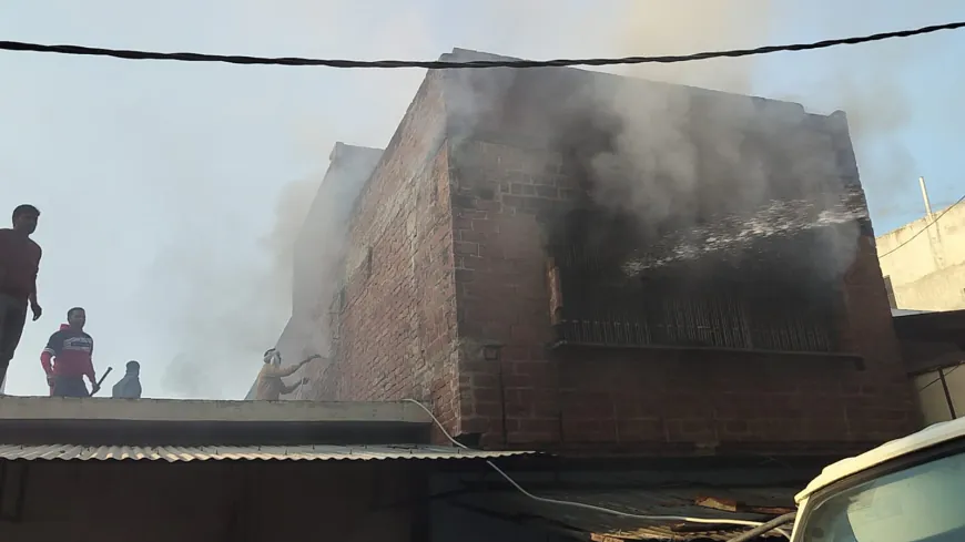 मकान की दूसरी मंजिल पर भीषण आग, परफ्यूम की बोतलों के धमाकों से दहशत, लाखों का नुकसान