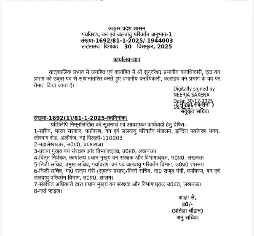दूसरी ओर बहराइच में भेड़ियों के हमले में बच्चों की मौत मामले में CM योगी के आदेश पर DFO बहराइच राम सिंह यादव हटा दिए गए। DFO एटा सुंदरेशा को DFO बहराइच बनाया गया है। राम सिंह यादव मुख्यालय से अटैच किये गए।