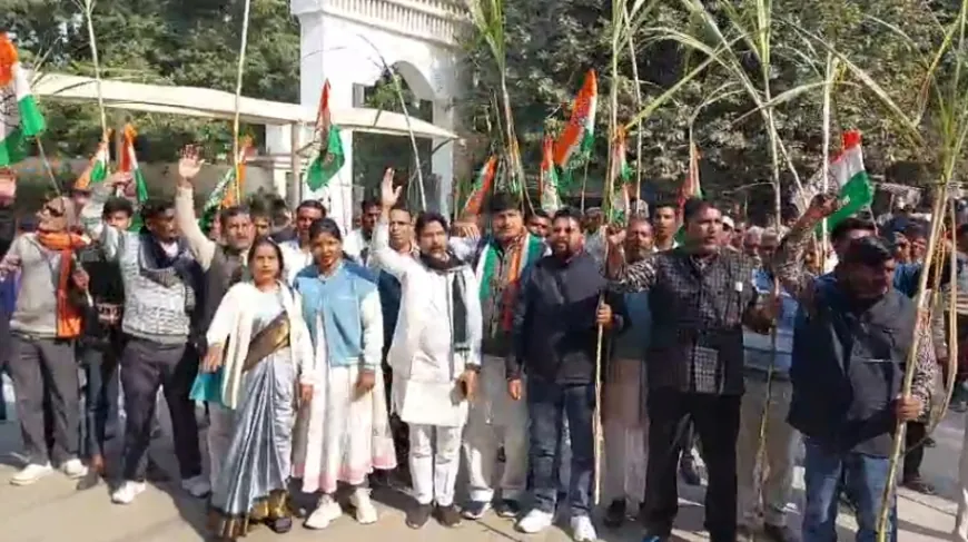 हरदोई में गन्ना किसानों की फर्जी सट्टा पर्चियों के खिलाफ कांग्रेस का प्रदर्शन, मुख्यमंत्री को भेजा ज्ञापन