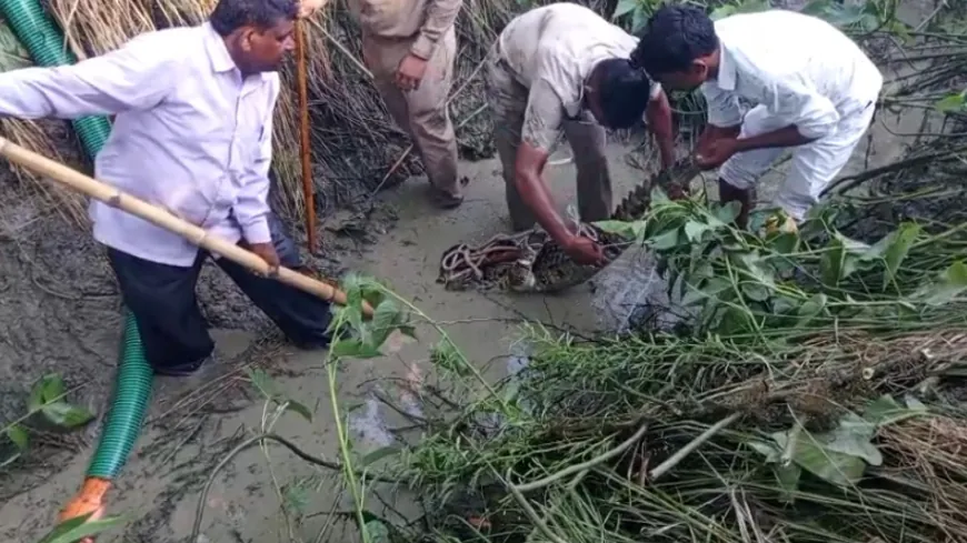 हरदोई में पानी भरी खाई से मिला मगरमच्छ, गांव में मचा हड़कंप