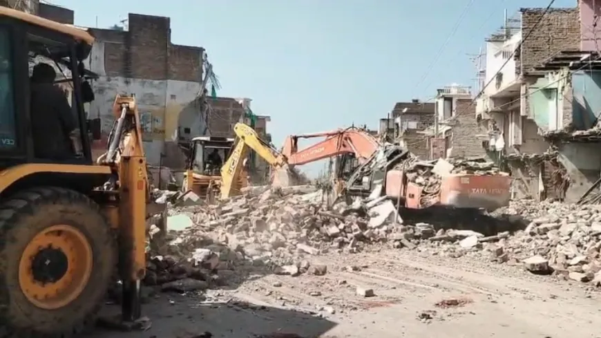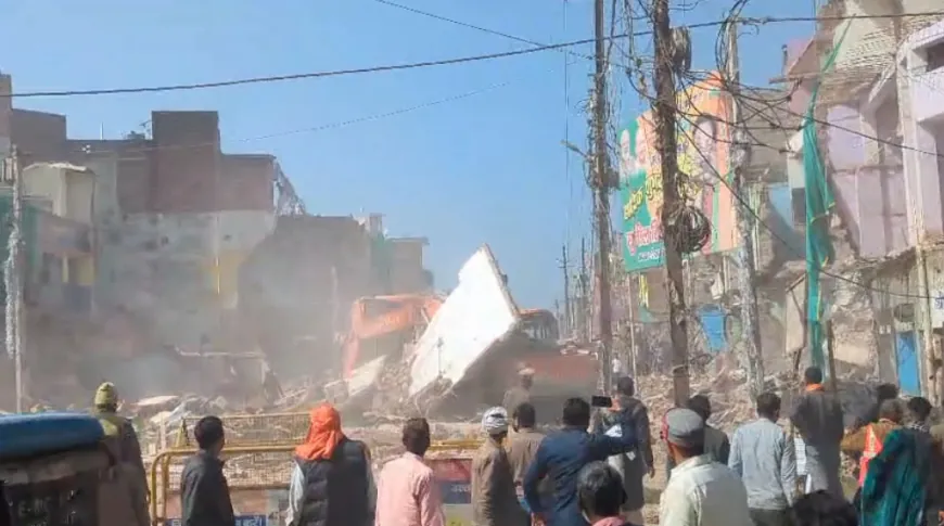 अतिक्रमण हटाओ अभियान के दौरान तीन मंजिला मकान पोकलैंड मशीन पर गिरा, चालक गंभीर रूप से घायल