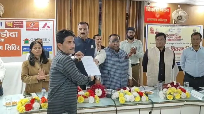 फतेहपुर/जनमत न्यूज। जनपद के विकास भवन सभागार में मुख्यमंत्री युवा उद्यमी क्रेडिट कैम्प एवं वृहद ऋण वितरण शिविर का भव्य आयोजन किया गया। कार्यक्रम में जनपद के सभी प्रमुख बैंक, विभिन्न विभागों के अधिकारी, जनप्रतिनिधि तथा बड़ी संख्या में युवा उद्यमी एवं स्वरोजगार से जुड़े लाभार्थियों ने प्रतिभाग किया।
