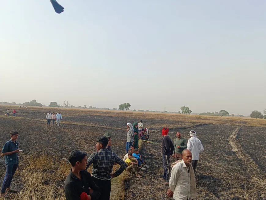औरैया समाचार, कुदरकोट आग, खेतों में आग, गेहूं की फसल नुकसान, किसान नुकसान, ग्रामीण घटना, उत्तर प्रदेश कृषि समाचार, जनमत न्यूज