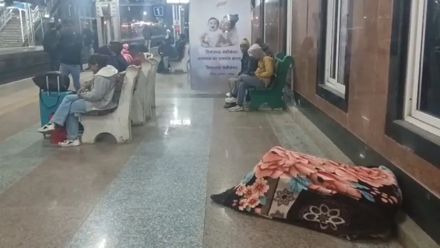 कड़ाके की ठंड में फतेहपुर रेलवे स्टेशन पर यात्री बेहाल, रैन बसेरे के अभाव में फर्श पर रात बिताने को मजबूर