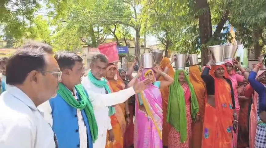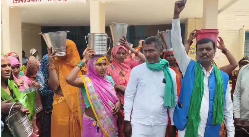 पानी की समस्या को लेकर ग्रामीणों का अनोखा प्रदर्शन, खाली बाल्टियां सिर पर रख कलेक्ट्रेट पहुंचे लोग